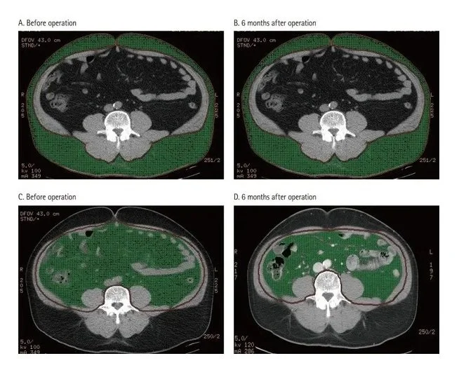 You can see Visceral Fat on an Abdominal CT shown here where visceral fat appears BLACK instead of WHITE as it appears on MRI images above. Go back and get all your Abdominal CTs to see for yourself this Visceral Fat. Sadly I guarantee even though it's deadly, decreases your quality of life & causes chronic disease NO ONE ever tells you about how much you had in your scans. Work with a health provider experienced in visceral fat to see how much an issue visceral fat is for you. The problem is very few are.